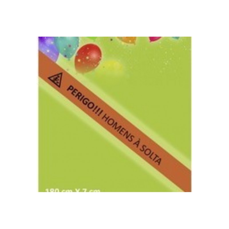 A faixa tem escrito “PERIGO HOMENS À SOLTA” e junto tem também um boneco noivo antistress para a acalmar na sua noite especial.