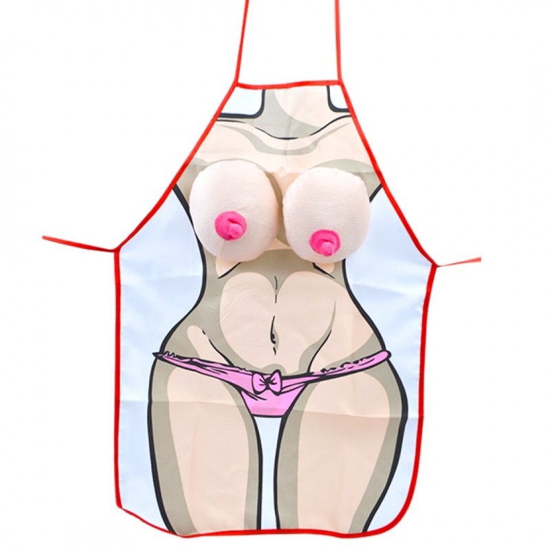 Avental cómico para momentos divertidos na cozinha, possui umas mamas salientes que vão garantir muitas gargalhadas. Com alças para fixar nas costas e pescoço.