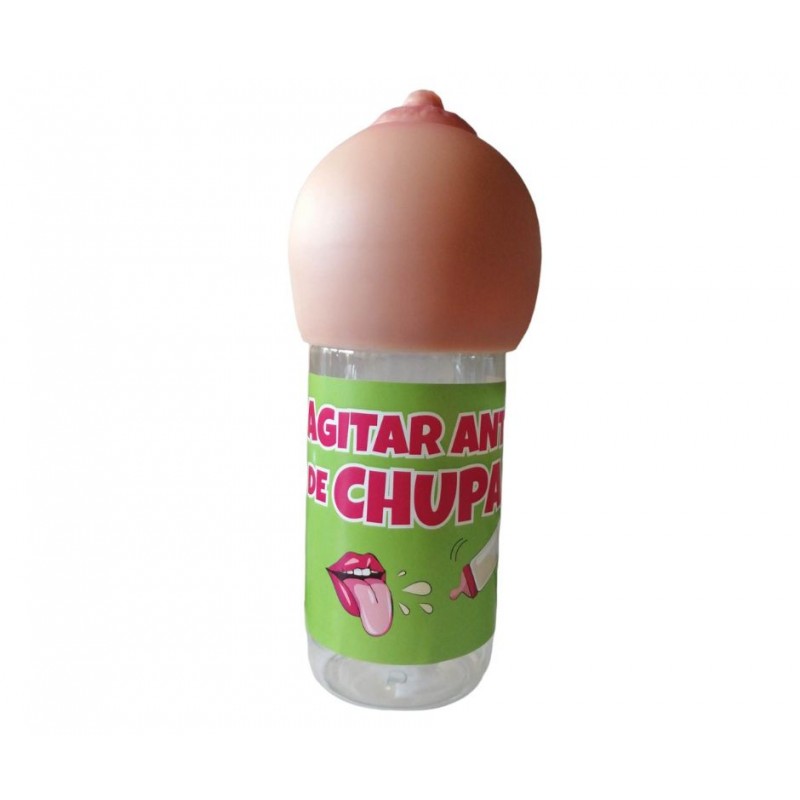 Biberão com capacidade para 360 ml. Inclui a mensagem agitar antes de chupar.