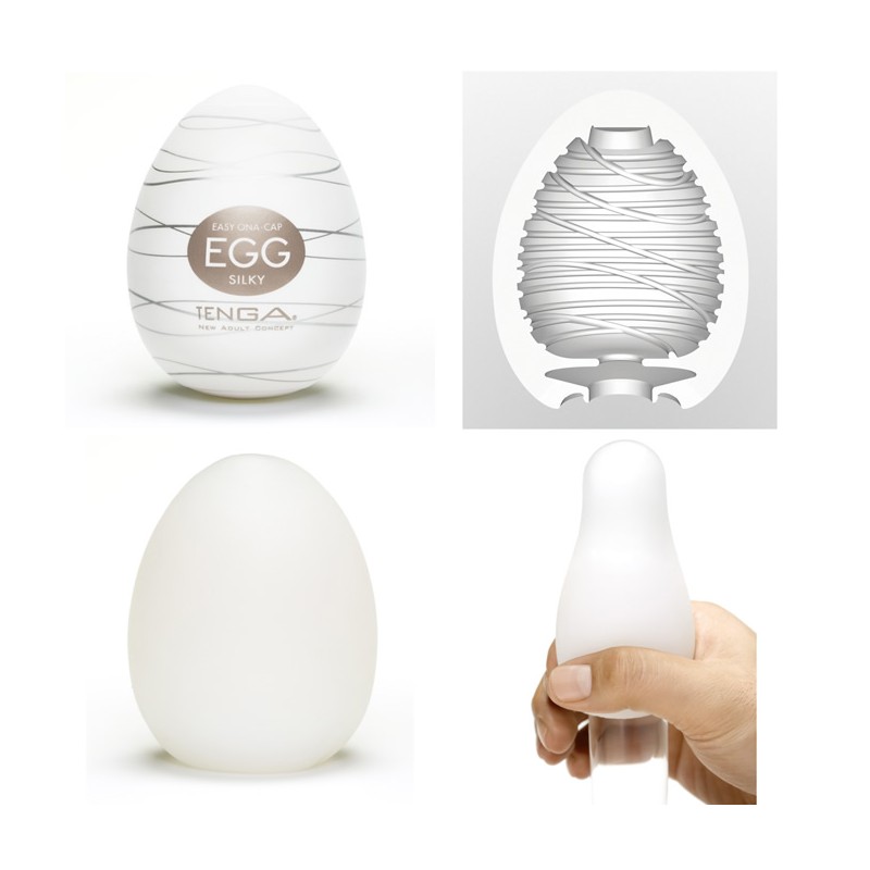 Egg Silky -Tem a extremidade arredondada com um padrão continuo para contornar e acariciar o pénis, parece seda.