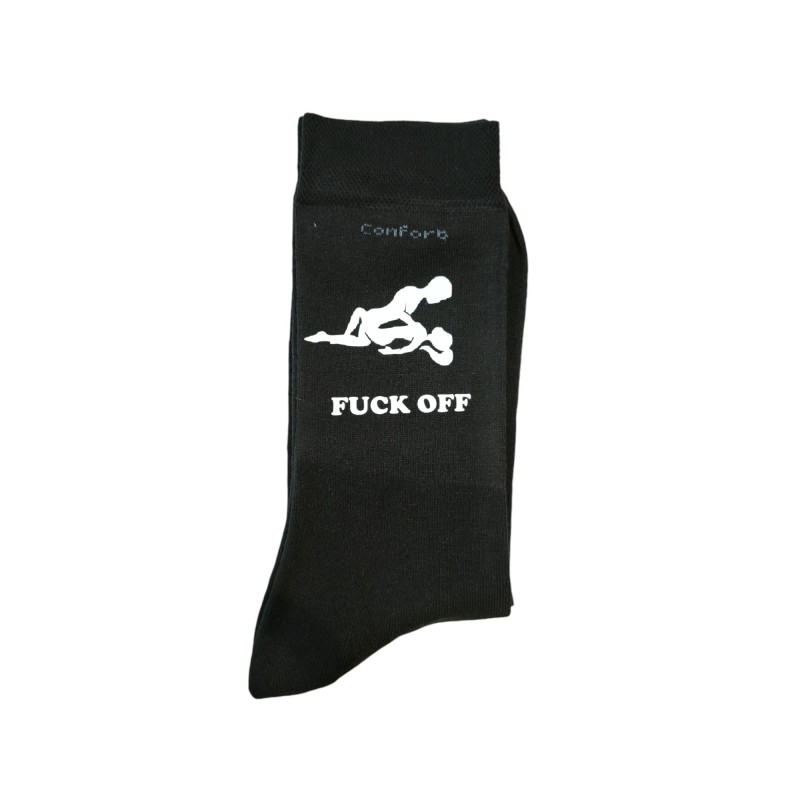 Meias com elástico moderado para melhor circulação. Com uma imagem timbrada numa meia apenas.