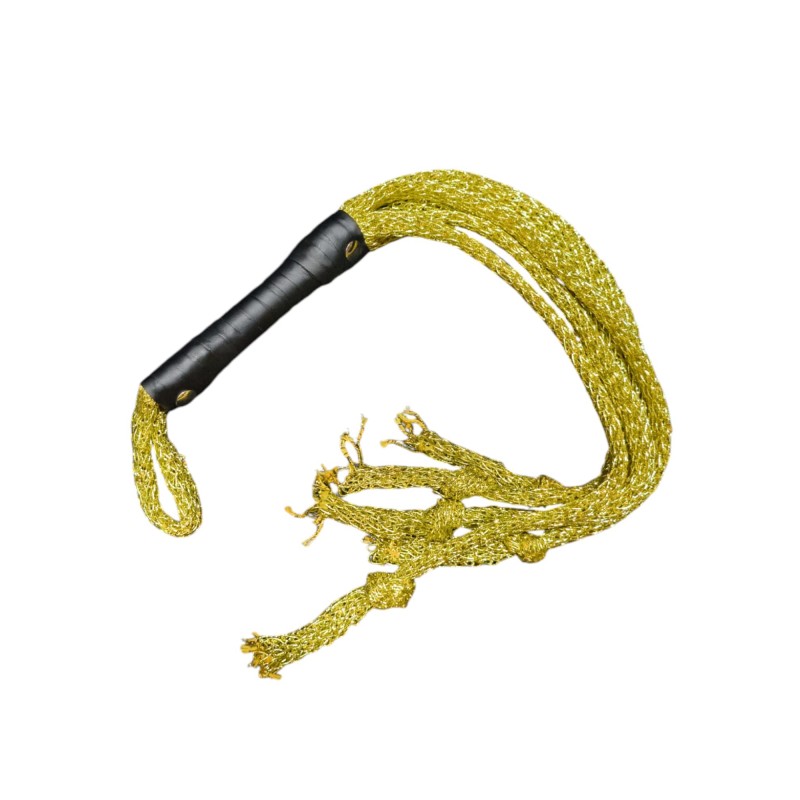 Com franjas douradas brilhantes e um cabo preto ergonómico, este acessório foi criado para trazer um toque de glamour ao universo do BDSM, enquanto oferece conforto e controle durante o uso.