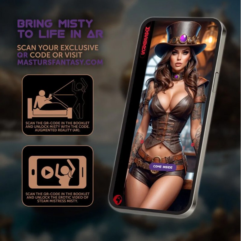 O panfleto dentro da embalagem contém códigos QR e um código único para guiá-lo ao mundo da Misty! Escolha entre uma experiência de Realidade Aumentada (AR) ou um filme erótico picante!