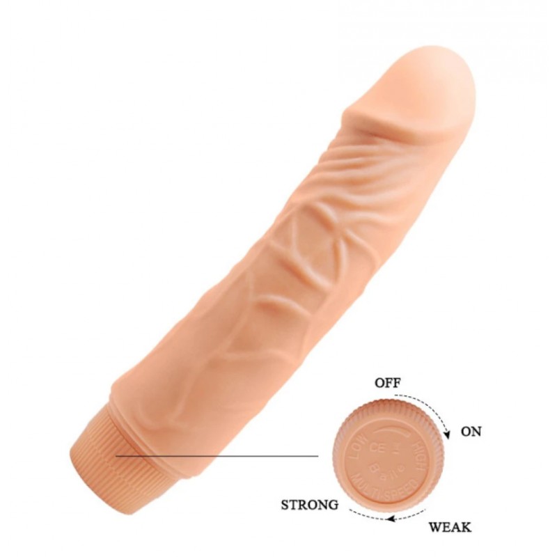Este fantástico vibrador em forma de dildo com curvatura inclui uma cabeça flexível, corpo realista e uma base alargada para máxima estimulação. E não se esqueça de levá-lo para um mergulho, pois o corpo deste dildo é à prova d'água. Elastomero termoplastica. Impermeavel.