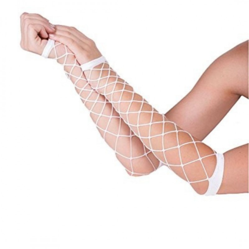 Luvas de rede larga pretas, são elásticas e sem dedos descobertos tornando-as mais confortáveis para usar.
