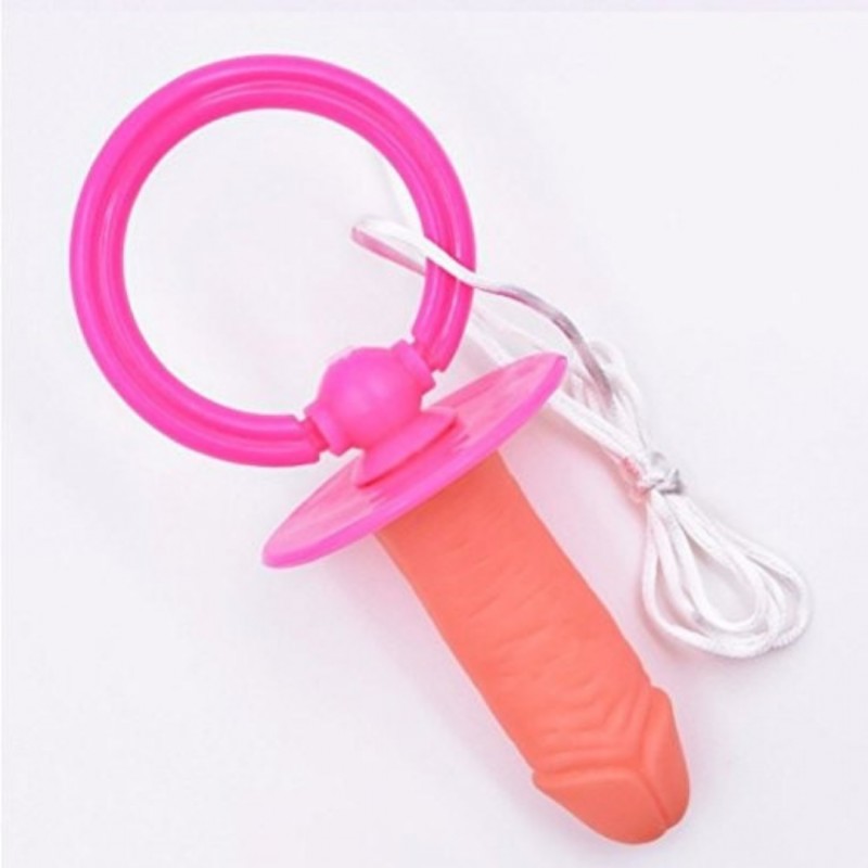 Chupeta grande em formato de penis com fita para amarrar ao pescoço !