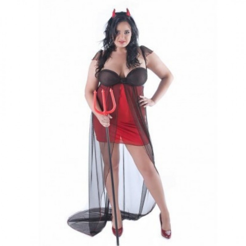 Fantasia de diaba com fita para o cabelo. Tecido suave e fluído.